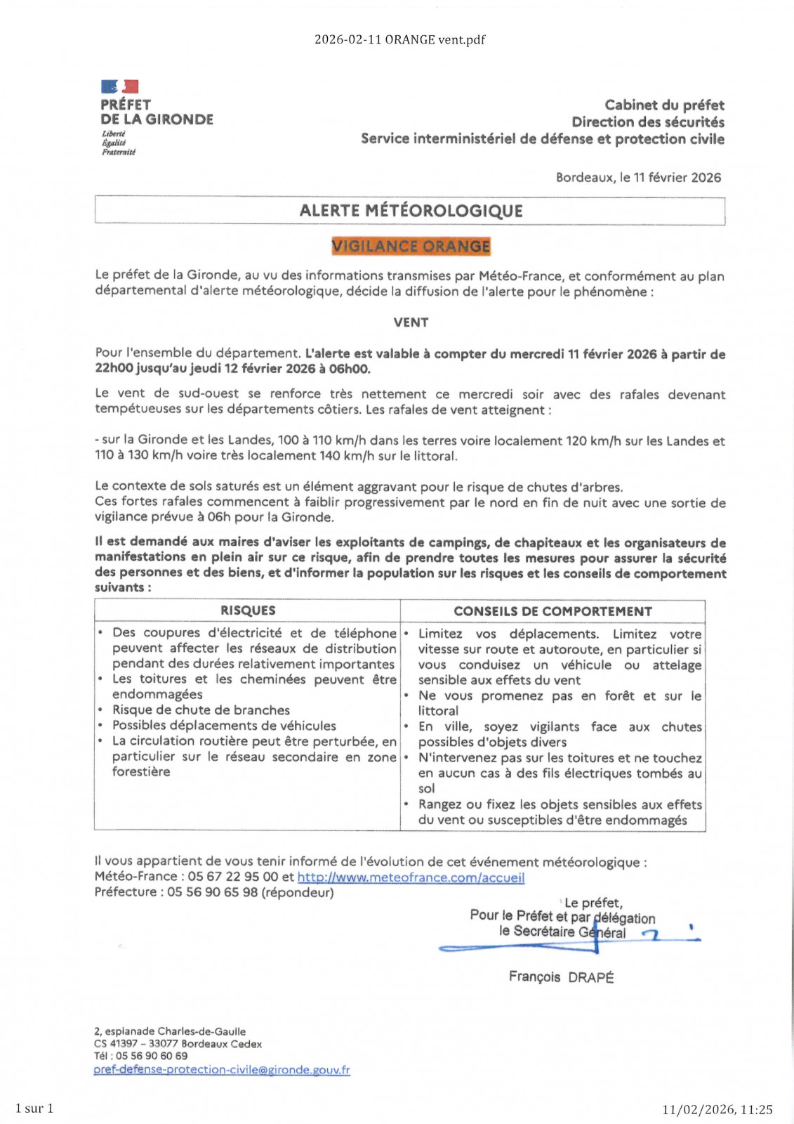 En cas d'urgence un élu d'astreinte est joingnable au :